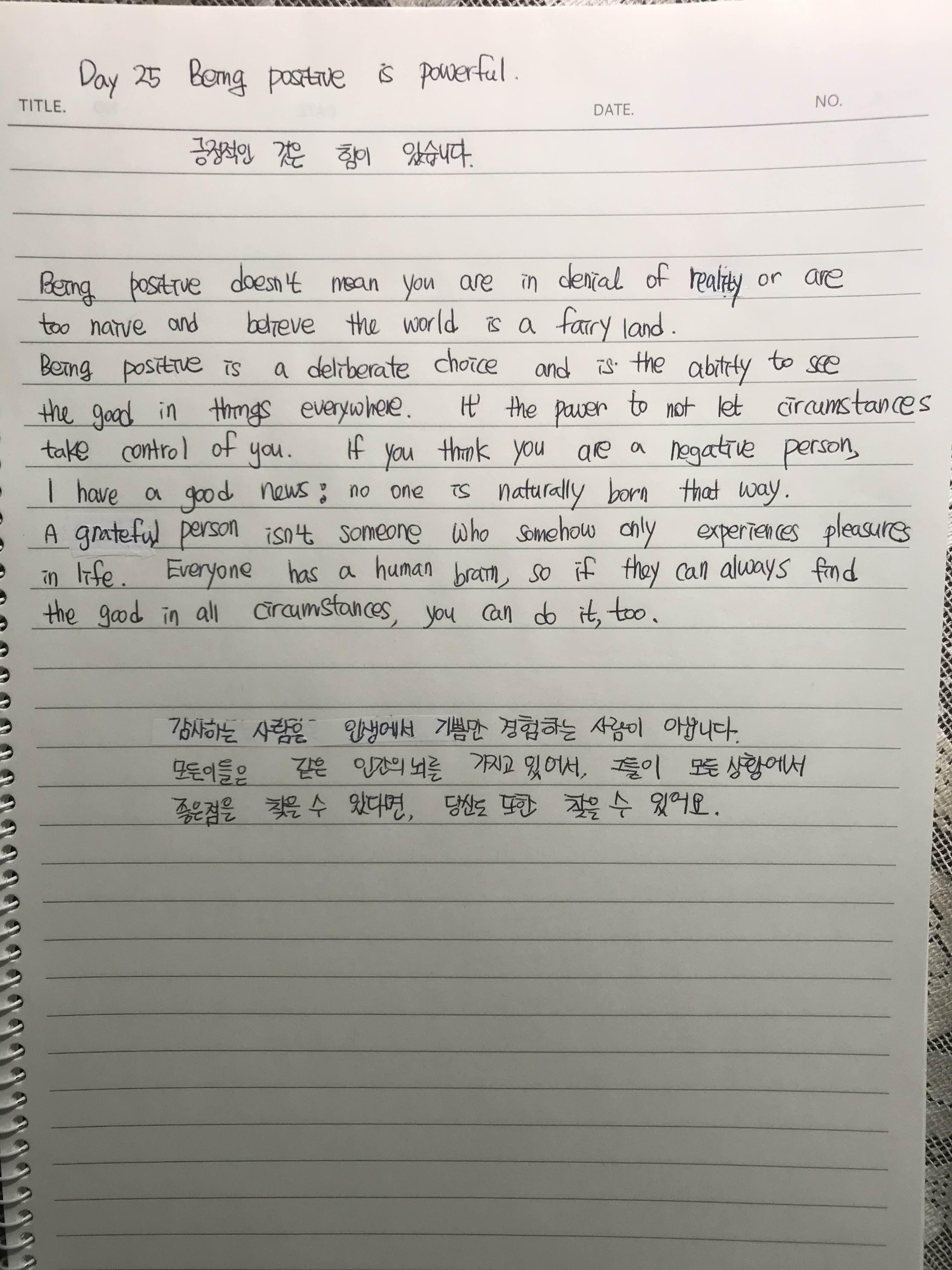 영어필사 100일의 기록 Day 25 by intelligentinvestor 2022. 12. 26. 공유하기 게시글 관리 dreamwebjin '영어필사 100일의 기록' 카테고리의 다른 글 Day 27 (0) 2022.12.28 Day 26 (0) 2022.12.27 Day 24 (0) 2022.12.25 Day 23 (0) 2022.12.25 Day22 (0) 2022.12.23 관련글 Day 27 Day 26 Day 24 Day 23 댓글